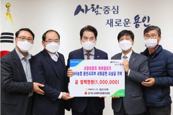 이의도 농협중앙회 용인시지부장은 “포상금을 의미 있는 곳에 쓰자는 직원들의 마음을 모아 이웃돕기 성금으로 기탁하게 됐다”며 “앞으로도 지역사회와 상생하는 다양한 나눔 활동을 펼칠 것”이라고 말했다.