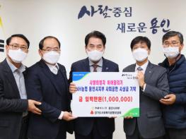 용인시는 1일 농협중앙회용인시지부 관계자 2명이 시장실을 찾아와 이웃돕기 성금 100만원을 기탁했다고 밝혔다.