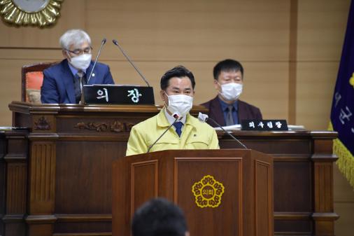 박정현 부여군수가 11월 30일 부여군의회 2차 정례회에서 “코로나19 라는 전대미문의 전 세계적 위기 속에서 소통과 협치는 더욱 절실하며, 동반자인 의회와 집행부가 군민 행복을 위해 지혜와 힘을 한데 모아 달라”라고 강조했다.