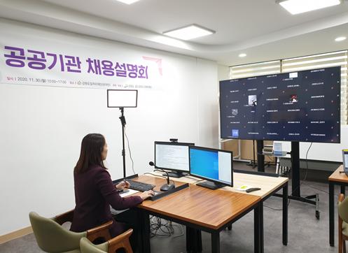 이번 채용설명회는 코로나19 이후 학교 등을 방문하여 진행되는 오프라인 행사가 어려워짐에 따라, 지난 8월 센터에 설치한 ‘e-studio’에서 온라인 생중계 방식으로 진행되었다.
