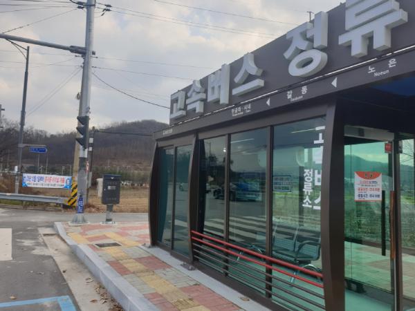 서충주신도시 인근의 중앙탑면 갈동마을 앞 고속버스 정류소를 경유하는 동서울행 고속버스는 오전 2회와 오후 3회, 총 1일 5회 운영된다.