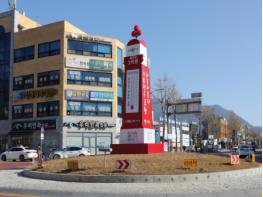 올해도 고창군 공용 터미널 앞 회전 교차로 교통섬에 사랑의 온도탑이 우뚝 섰다.