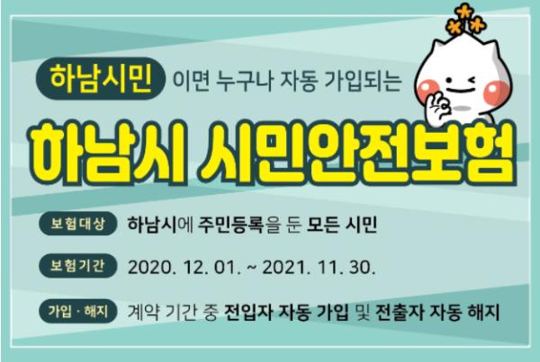 한편 시민안전보험은 사고당시, 하남시에 주민등록이 되어 있는 시민은 가입절차 없이 누구나 지원 받을 수 있다. 보험금 청구는 청구 사유 발생 시 피해자 또는 법정 상속인이 청구서와 구비서류 등을 갖추어 시민안전보험 접수센터(☎1666-4912)를 통해 접수하면 된다.