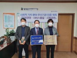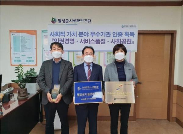 달성군시설관리공단은 사회적 가치에 기반한 다양한 노력을 통해 인권경영·서비스품질·사회공헌 부문에서 우수기관 인증을 획득했다고 밝혔다.