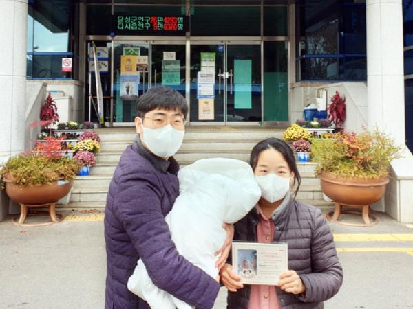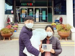 액자형 출생 축하 카드는 태어난 아기 사진을 넣을 수 있게 제작했고, 부모와 아기 이름, 사랑스러운 아기와 부모님의 행복을 온 군민과 함께 기원하는 축하 메시지를 동시에 담고 있다.