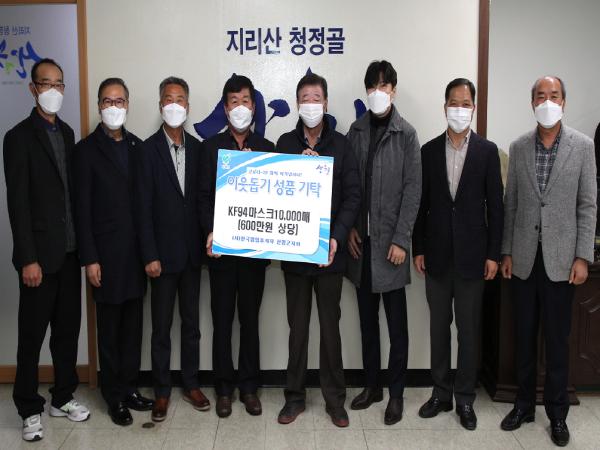 (사)한국임업후계자 산청군지회(회장 강대성)가 2일 산청군청을 찾아 600만원 상당의 마스크(KF94) 1만매를 기탁했다.