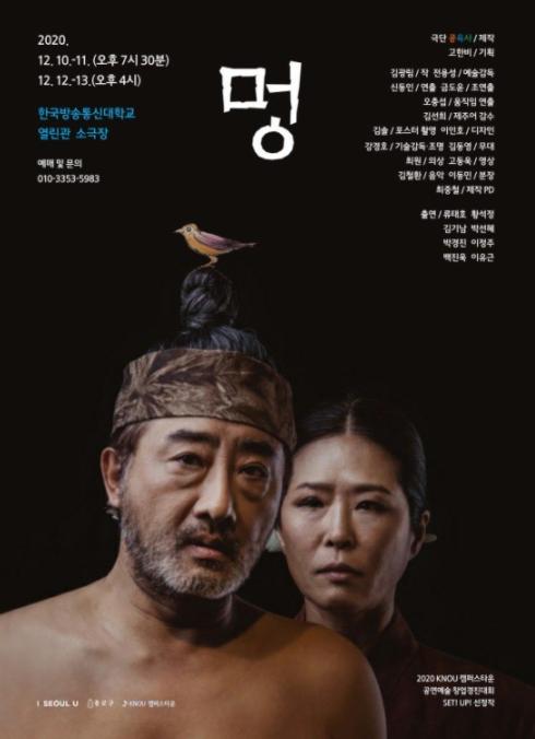 오랜만에 연극 무대로 돌아온 류태오, 황석정이 열연하는 연극'멍'이 12월 10일부터 13일까지 대학로(방송통신대학 열린관 소극장)에서 공연된다.