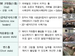 올해 1월 1일부터 시행된 ‘축산법 시행령·규칙’에는 신규로 가축 사육업 허가를 받은 양돈 농가는 교배한 날부터 6주가 지난 임신돼지를 군사 공간에서 사육해야 한다고 규정하고 있다.
