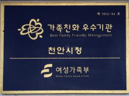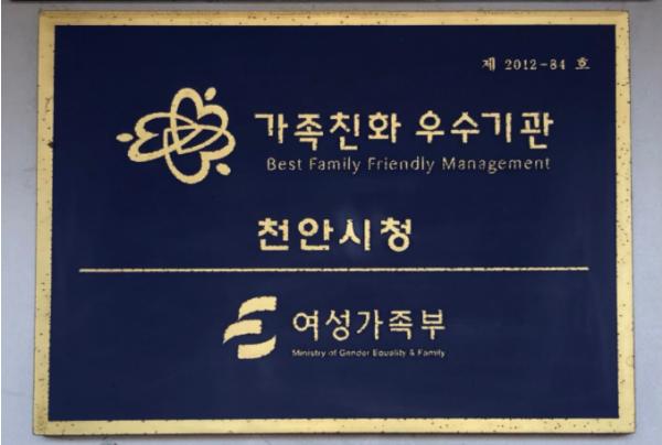 2012년 가족친화기관으로 최초 인증을 받은 천안시는 2017년 재인증을 받았으며, 이번 새 인증 기간은 2023년 11월까지로, 가족친화제도 모범 운영 공공기관 지위를 재획득하게 됐다.