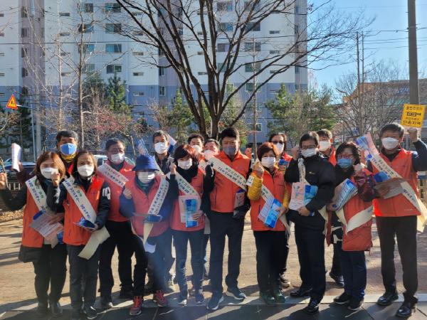 이후, 유동인구가 많은 원호지구 상가?원룸밀집지역에서 지역주민들을 대상으로 겨울철 복지위기가구 발굴 지원 홍보물품 kf94 마스크를 전달하며, 주변의 어려운 이웃을 발견했을 때 즉시 알려주어 도와줄 수 있도록 적극 홍보하였다.