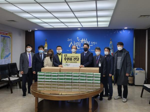 구리시는 1일 시청 민원상담실에서 최장원 ㈜케이피트레이딩 대표, 김재현 구리시장애인종합복지관장 등 관계자 8명이 참석한 가운데, ㈜케이피트레이딩에서 후원한 KF-AD 비말 마스크 100만장(5억원 상당)을 구리시장애인종합복지관에 전달했다고 밝혔다.
