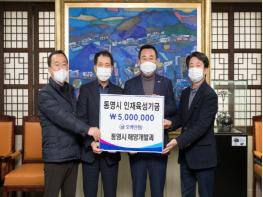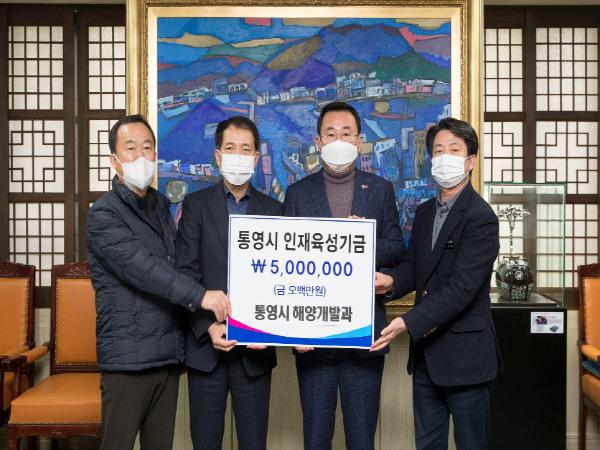 통영시는 12월 2일 지역 인재육성을 위해 2020년 해양수산부 주관 지역 해양쓰레기 관리 역량평가에서 통영시가 전국 73개 연안 기초 지자체 중에서 최우수 지자체로 선정되면서 받은 포상금 중 5백만원을 인재육성기금으로 기탁했다.