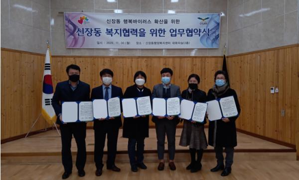 오산시 신장동행정복지센터(동장 유영만)와 신장동지역사회보장협의체(위원장 장선이)가 지난 11월 30일 관내 지역아동센터, 민간기관 등 4개 기관과 2020년 2차 복지 업무협약을 체결했다.