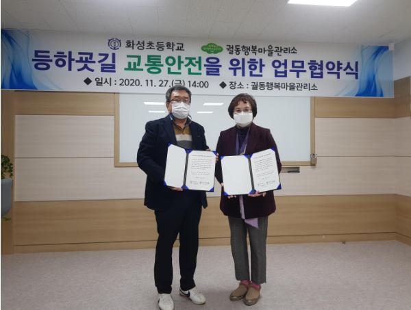 오산시 궐동행복마을관리소(운영위원장 김영동)는 지난 11월 27일 화성초등학교와의 업무협약에 이어 12월 1일 대호초등학교와 등하굣길 교통안전을 위한 업무협약식을 체결했다.