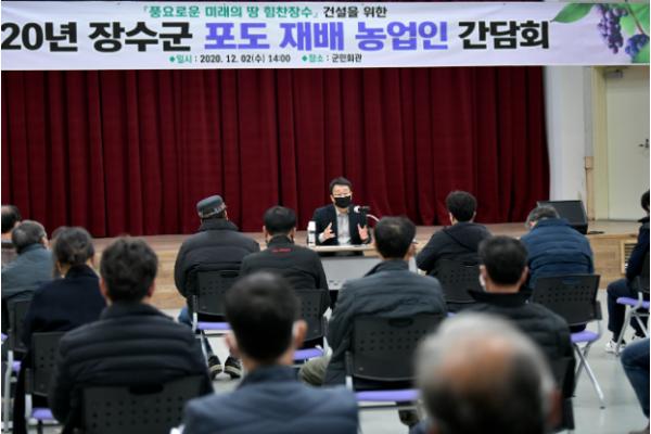 장수군은 2일 장수군청 내 군민회관에서 장영수 군수 및 포도 재배농업인과 관심농가들이 참석한 가운데 포도 산업 활성화를 위한 간담회를 가졌다