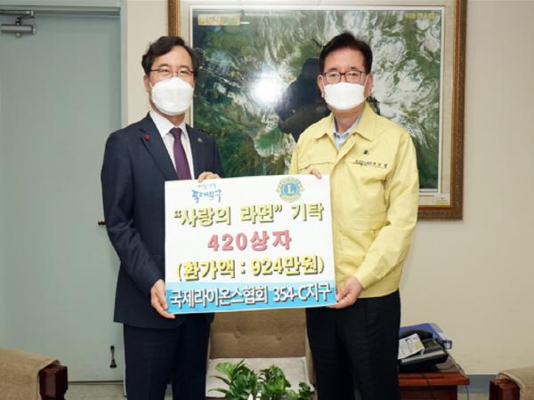 서울특별시 동대문구는 국제라이온스협회 354-C지구에서 어려운 이웃을 위한 라면상자를 전달했다고 2일 밝혔다.