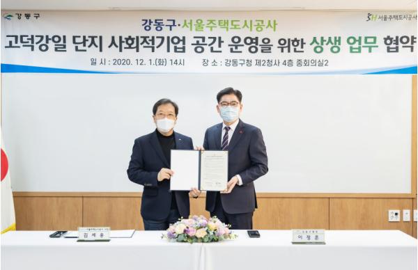 협약에 따라 SH공사는 강동구에 고덕강일 4·6·7·8·11·13·14단지 등 7개 단지의 사회적기업 입주공간 14곳을 무상으로 제공한다. 구는 입주기업 발굴·선정, 입주 사회적기업 활동 및 입주민 참여 프로그램 지원 등 공간 운영을 맡는다.