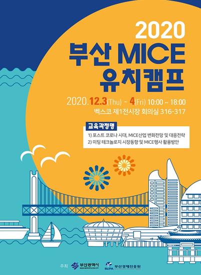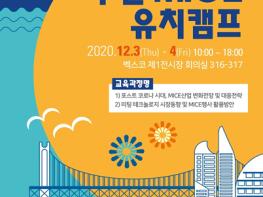 부산시(시장 권한대행 변성완)는 마이스 기업 인력 육성과 역량 강화를 위해 12월 3~4일 벡스코에서 「2020년 마이스 강소기업 중간관리자 유치캠프」를 진행한다고 밝혔다.
