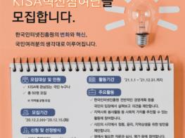 한국인터넷진흥원(KISA, 원장 김석환)은 국민과 함께 기관을 혁신하고 사회적 가치를 창출하고자 ‘제3기 KISA혁신참여단’을 모집한다고 12. 2일 밝혔다.