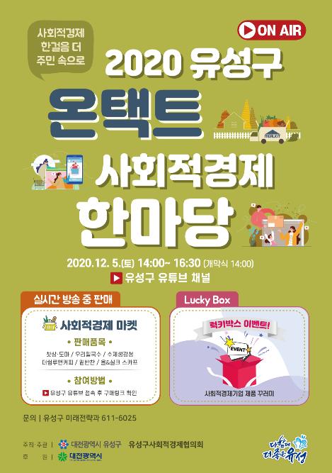 대전 유성구가 오는 5일 연대와 협력을 통한 사회적경제 가치 확산을 위해 ‘2020 사회적경제 한마당 축제’를 개최한다.
