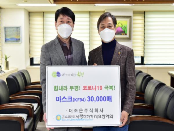 이번 기탁품은 경기도 소재 마스크 제조업체 더조은(주)이 지요장학회를 통해 구에 전달한 것으로, 더조은(주)은 코로나19 발생 초기인 지난 2월에도 지요장학회를 통해 구에 KF94 마스크 5천 매를 기탁했다.