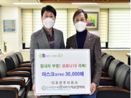 인천시 부평구는 지난 2일 (사)수와진의 사랑더하기 지요장학회로부터 코로나19 감염 예방을 위한 KF94 마스크 3만 매를 기탁 받았다.