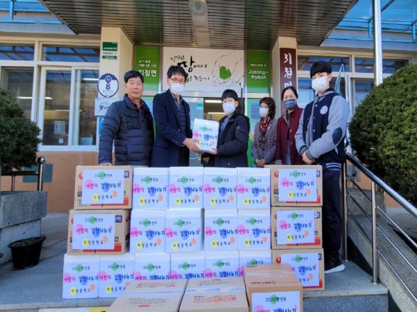 의령군 지정면에 소재한 지정중학교(교장 강강원)에서는 지난 12월 2일 김장철을 맞이하여 저소득 이웃 주민을 위해 학생과 교직원이 직접 담근 사랑의 김장김치와 성금행사로 모은 라면을 지정면사무소에 기탁했다.