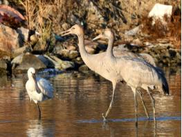 지난 12월 1일 검은목두루미 2개체가 신안 압해도 논 습지에서 확인되었다. 이번에 관찰된 검은목두루미는 신안에서 처음으로 확인된 사례이며, 월동지로 이동 중 휴식을 위해 잠시 중간기착한 것으로 판단된다. 하지만 겨울내 월동할 가능성도 있기 때문에 지속적으로 모니터링 할 예정이다. 또한 압해도에서는 멸종위기Ⅰ급 황새와 저어새, Ⅱ급 알락꼬리마도요, 노랑부리저어새가 도래해 월동 중이며, 지난 겨울에도 흑두루미 100여 개체가 압해도를 찾아 날아들었다. 생물권보전지역인 압해도 갯벌은 1만여 개체의 다양한 도요·물떼새들이 번식과 월동을 위해 대규모로 찾아오는 지역이다.