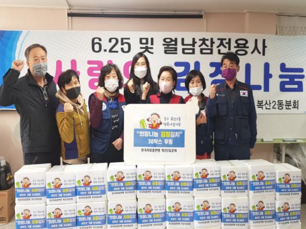 울산시 중구 한국자유총연맹 복산2동분회는 2일 오후 1시 울산 중구 복산2동 행정복지센터에서 ‘희망나눔 김장김치’를 전달했다.