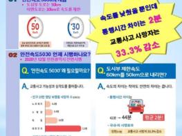 또한 “속도를 10km 줄여도 통행시간 차이는 평균 2분으로 안전속도 5030은 교통사고 예방에 효과가 있다”고 강조하며, 운전자에게 제한속도 준수 등 법규준수를 철저히 할 것을 당부했다.