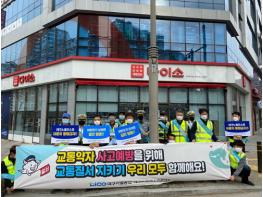 이날 캠페인에서는 교통약자 사고예방, 후진 시 내려서 주변 확인, 사람이 보이면 일단 멈춤, 학교주변 불법주정차 금지, 테크노폴리스로 이륜차 진입금지 등 현수막과 피켓을 게시하고, 시민들에게 교통질서 수칙이 적힌 홍보물품을 배부했다.