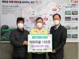 밀양시는 밀양아라리쌀 작목반(반장 손태오)에서 3일 저소득층 연말연시 및 코로나19 극복을 위해 사랑의 아라리쌀을 기탁했다고 밝혔다.