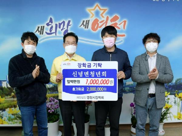 신녕면청년회(회장 이광실)는 젊음의 힘으로 각종 봉사활동을 통해 지역 면민의 화합과 발전을 위해 애쓰고 있으며 영천 교육발전에 힘을 보태고자 100만원의 장학기금을 장학회에 기탁했다.