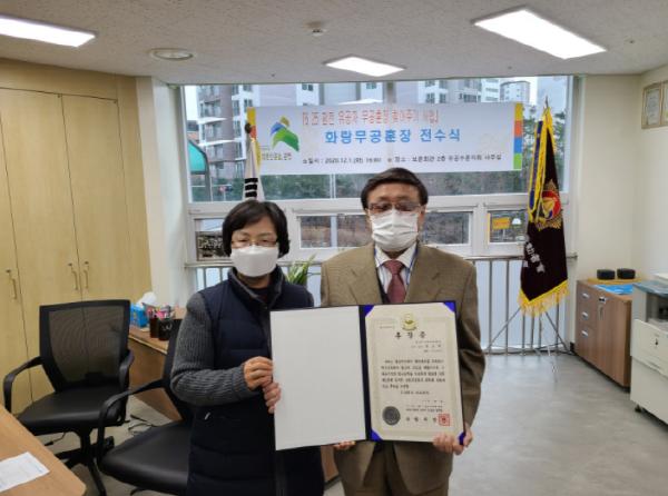 은평구는 6·25전쟁 제70주년을 맞아 국방부에서 추진한 ‘6·25전쟁 무공훈장 주인공 찾아주기’사업을 통해 참전 유공자인 육군 상사 故정수학 님의 화랑무공훈장을 아들인 정진태 씨에게 68년만에 가족의 품으로 돌아가도록 전수식을 개최했다.