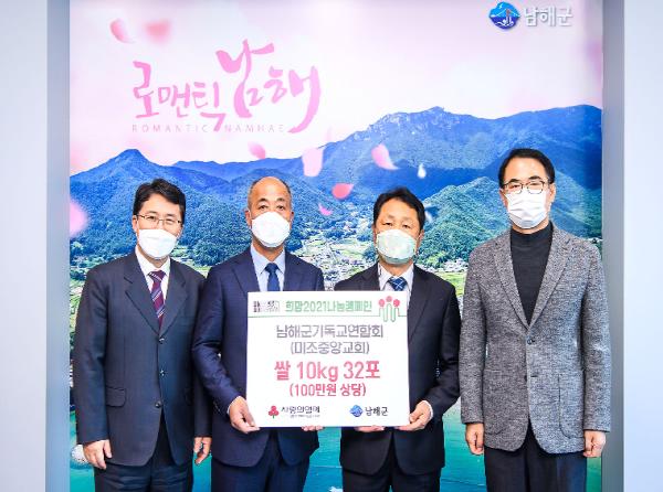보물섬드론교육센터와 남해군기독교연합회는 지난 3일 남해군청 군수실을 방문해 ‘희망 2021 나눔캠페인’ 동참의 뜻을 밝히며 각각 교육용 드론 100대와 쌀 32(10kg)포를 기탁했다.