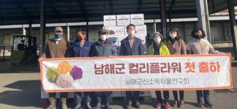 국내에서는 1970년대에 본격적으로 재배가 시작되었으며, 최근에는 흰색뿐만 아니라 노랑, 연두, 자주(보라) 등 다양한 색의 품종도 재배되고 있다. 이번 남해군에서는 흰색의 두가지 품종의 콜리플라워를 재배하였고 8kg 한 박스로 총 57박스를 가락공판장으로 첫 출하를 하게 되었으며. 가격은 한 박스에 최저 6,714원에서 최고 10,000원선으로 거래 되었다.