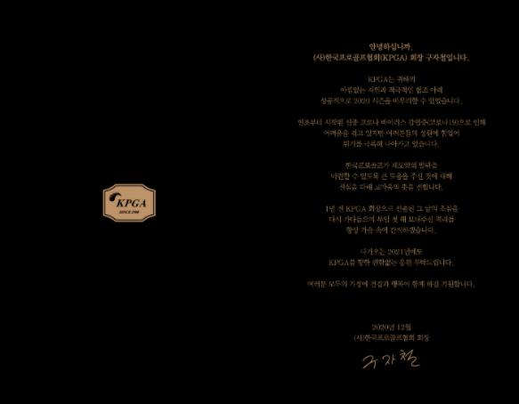 또한 구자철 회장은 “아직 가야할 일이 멀지만 그래도 분명히 달라지고 있다. 더 나은 방향으로 가고 있다는 희망을 품게 된 한 해였다”고 의미를 찾으며 “다가오는 2021년에도 KPGA를 향한 변함없는 성원 부탁드린다. 최선을 다하겠다”는 의지를 나타내기도 했다.