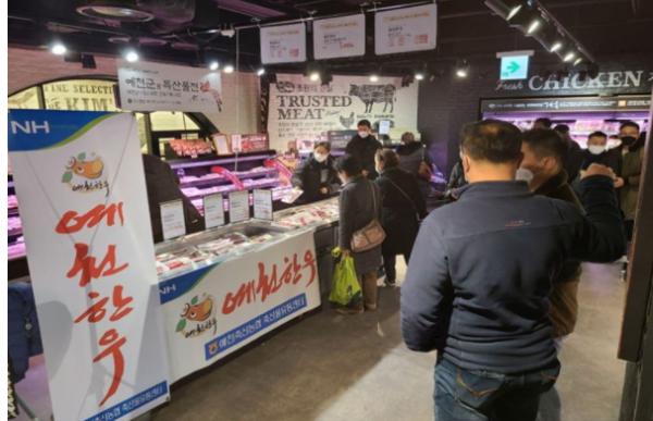 예천군이 지난 11월 25일부터 12월 1일 까지 7일간 서울 강남뉴코아백화점(킴스클럽1층)에서 ‘예천군 우수 농?특산물 판매대전’을 개최한 결과 1억여 원의 판매 성과를 거뒀다고 밝혔다.