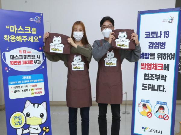 ‘마스크 착용 홍보 앞치마’ 배부 업소는 프랜차이즈형을 제외한 관내 음식점·카페 10,394개소다. 고양시는 매장 규모 200㎡ 이상 업소는 5개, 200㎡ 미만 업소는 3개 등 총 32,666개의 앞치마를 오는 12월 14일까지 배부 완료한다는 계획이다.