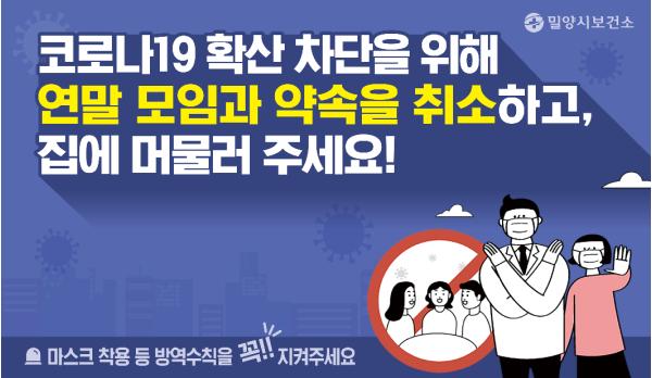 밀양시는 12월 1일부터 내년 1월 15일까지 연말연시 모임·행사 멈춤 비대면 캠페인을 진행한다고 밝혔다.