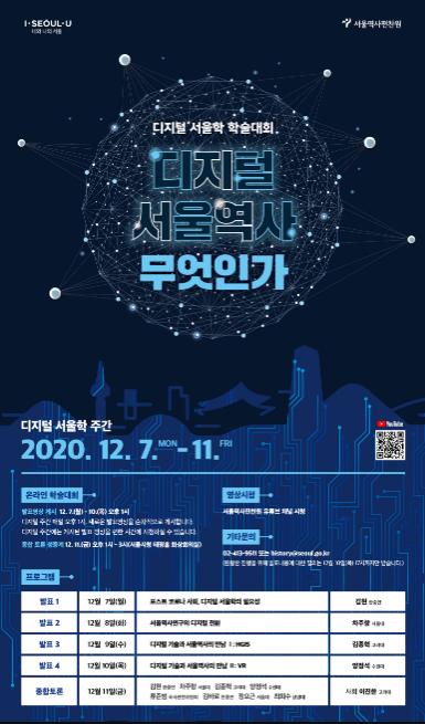 서울역사편찬원(원장:이상배)은 포스트 코로나19 사회 관련하여, 2020년 12월 7일~11일 5일 동안 디지털 서울학 학술대회를 개최한다.