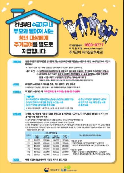 이 제도는 취학과 구직 등을 목적으로 부모와 거주지를 달리하는 20대 청년들에게 주거급여를 분리 지급함으로써 안정적인 자립을 지원하기 위해 추진됐다.
