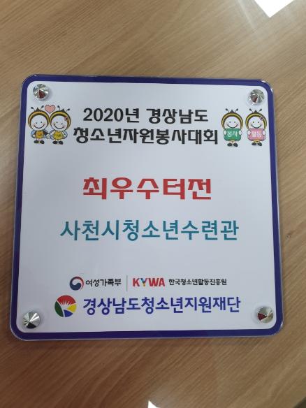 사천시 청소년육성재단 사천시 청소년수련관은 여성가족부와 경상남도가 주최한 2020년 경상남도청소년자원봉사대회 최우수터전으로 선정되어 여성가족부장관상을 수상하는 영예를 안았다.