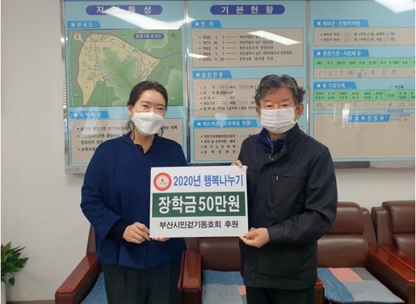 부산시민걷기동호회(회장 한장석)는 12월 4일 문현4동행정복지센터에 장학금 50만원을 기탁했다.