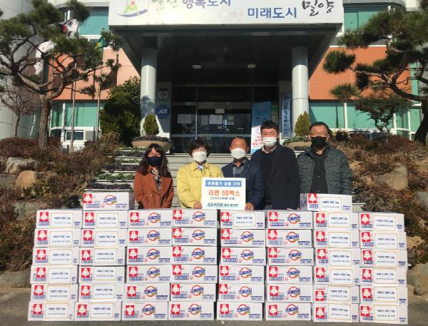 밀양 성진케이블(대표 홍창환)은 4일 교동 행정복지센터에 라면 50박스(75만원 상당)를 전달했다.