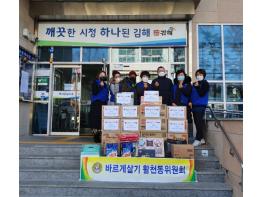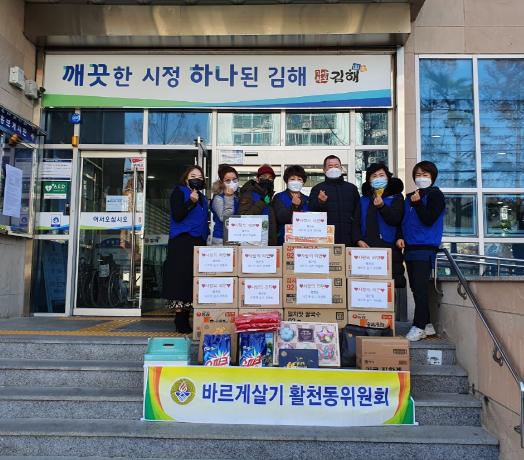 김해시 활천동 바르게살기 위원회에서는 12월 3일 활천동행정복지센터를 찾아 관내의 어려운 이웃을 위해 써달라며 라면 15박스 및 생필품 20점을 기탁하였다.