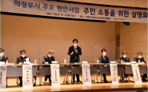 의정부시는 12월 4일 의정부시청소년수련관 한울관에서 신곡권역, 호원권역 도·시의원과 자생단체, 주민, 시민단체 등 40여 명이 참석한 가운데「의정부시 주요 현안사업 주민 소통을 위한 설명회」를 개최했다.