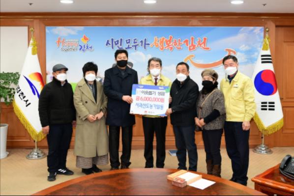 김충섭 김천시장은“어려운 이웃들에게 도움의 손길을 늘 잊지 않고 보내주시는 선도농가에 감사의 말씀을 드리며, 덕분에 코로나로 인해 어려웠던 2020년 한해가 따뜻하게 마무리 될 것 같다. 2021년에도 지속적인 행복나눔 실천을 통해 시민모두가 행복한 김천이 될 수 있도록 많은 도움을 부탁드린다”고 당부하였다.