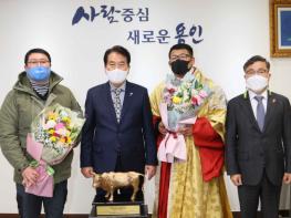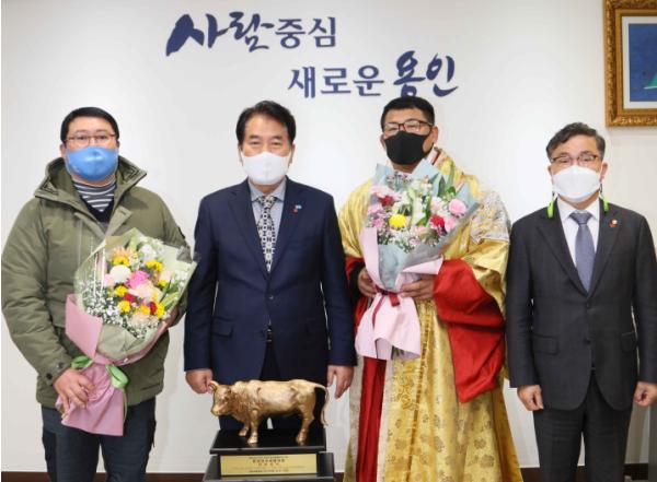 백군기 용인시장은 4일 시청 시장실에서 불혹의 나이를 극복하고 한라장사에 오른 우형원 선수 등 용인백옥씨름단과 시 씨름협회 관계자들을 격려했다.