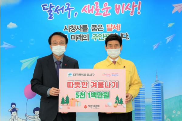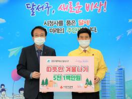 대구시 달서구는 대구사회복지공동모금회에서 지난 2일 달서구를 방문해 저소득 주민들이 따뜻한 겨울을 보낼 수 있도록 난방비 5천1백30만원을 전달했다고 밝혔다.